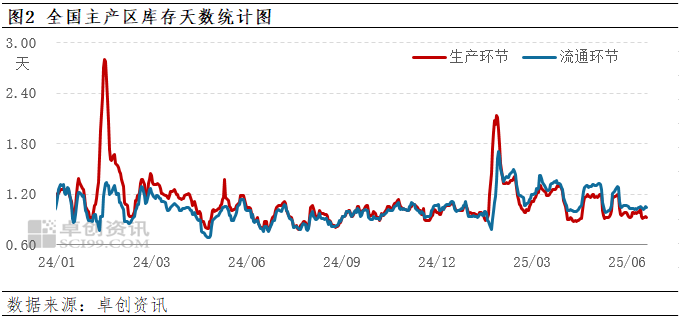 库存:今日全国生产环节平均库存0.92天左右,流通环节库存1.04天左右,库存量稍减。