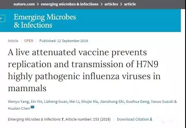 陈化兰院士团队在H7N9疫苗研发方面取得新进展