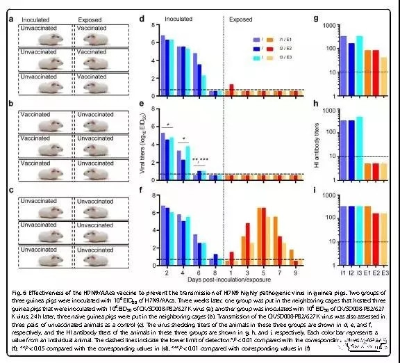 研究发现一剂H7N9/AAca禽流感活疫苗可以有效地防止高致病禽流感病毒CK/SD008-PB2/627K在豚鼠体内的传播。