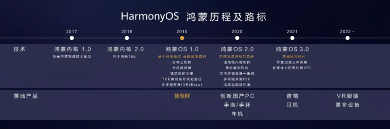 根据华为公布的鸿蒙OS的演进路径,华为将在2020年推出鸿蒙OS2.0,应用于创新国产PC、手表/手环、车机上;2021年推出鸿蒙OS3.0,应用于音箱、耳环上;2022年将应用在VR眼镜等更多终端设备。华为要通过鸿蒙OS打造的,是一个5G时代软硬件闭环的超级生态。